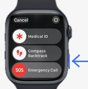 To manually call emergency services (any Apple Watch), press and hold the side button (below the Digital Crown).